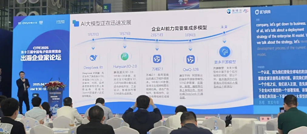 4月9日-11日,第十三届中国电子信息博览会(CITE 2025)在深圳会展中心盛大开幕。海域云亮相1号主展馆,受邀出席CITE2025出海企业家论坛并发表《企业AI大模型和信息安全部署策略》演讲。