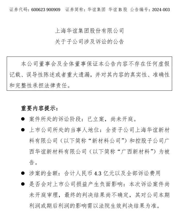 2024年4月2日,上海华谊集团股份有限公司(以下简称“华谊集团”) 发布子公司涉及诉讼进展的公告。公告显示,华谊集团的两家子公司被阿克马公司(Arkema Inc.)起诉侵犯两项专利,索赔金额合计4.3亿元!