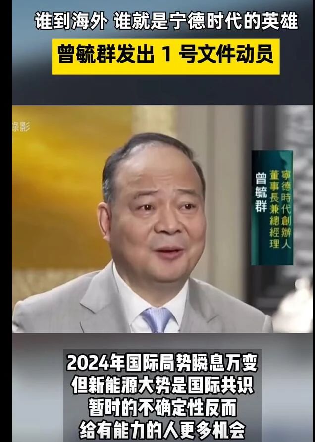 这是一封出海动员信。去年底,宁德时代员工的电脑桌面被统一设置成这样一句标语——“谁到海外,谁就是公司的英雄,走出去,到海外去。”