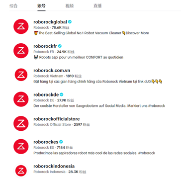 石头科技在Facebook、TikTok、Instagram等主流社交平台上均建立了营销矩阵,通过这些渠道与用户密切互动,宣传产品动态并传递品牌价值。甚至在不同国家和地区,石头科技还设立了不同的官方账号,输出差异化内容。