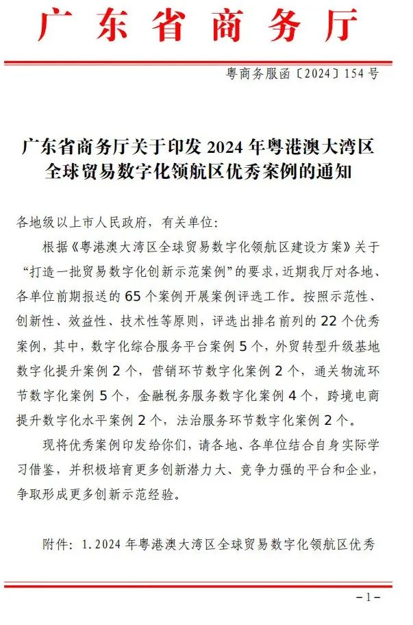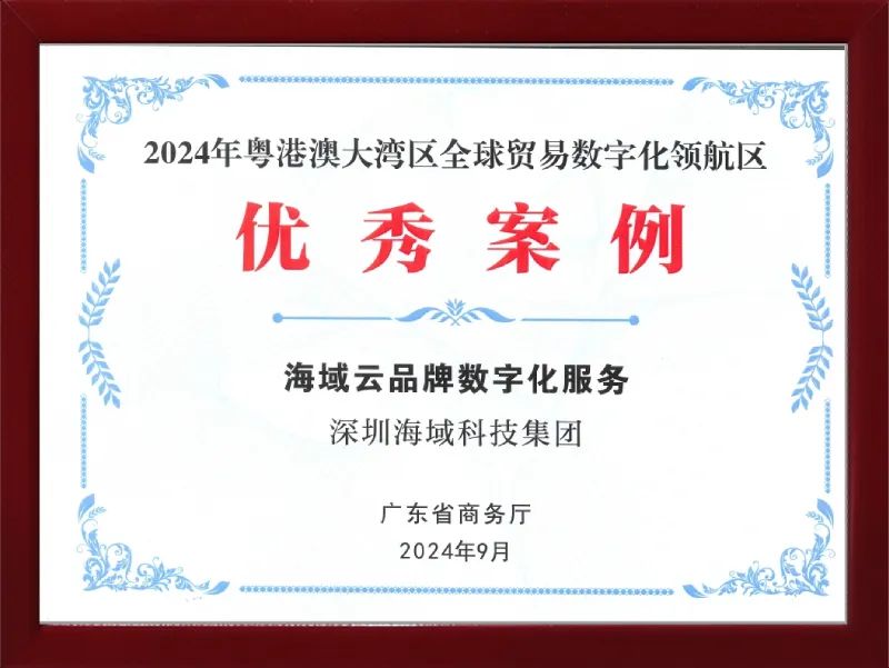 由广东省商务厅组织开展的“征集广东省数字贸易优秀案例”活动已完成组织评审并正式公布。在众多杰出的参选案例中,“海域云品牌数字化服务”项目脱颖而出,荣获了备受瞩目的“2024年粤港澳大湾区全球贸易数字化领航区优秀案例奖”。