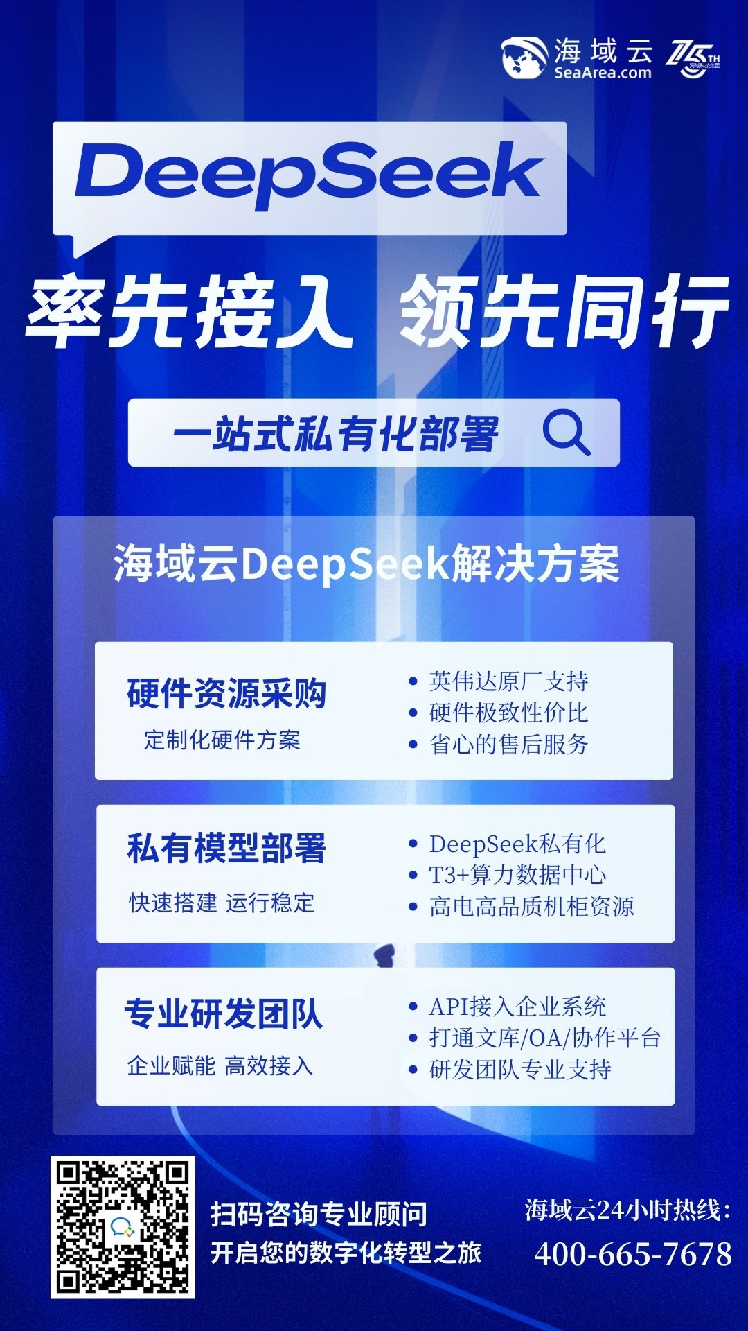 海域云已为多个行业、多家企业提供Deepseek大模型私有化部署解决方案,欢迎咨询