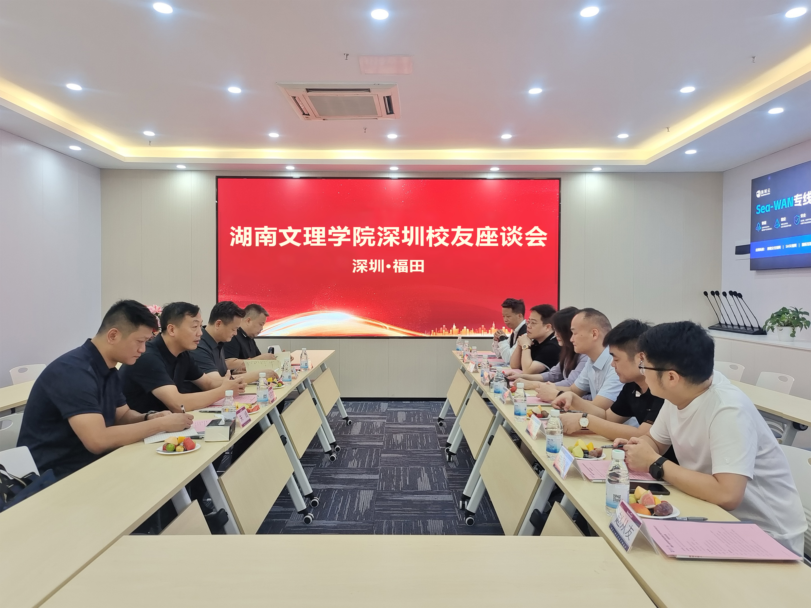 此次到访的嘉宾还有:湖南文理学院招生就业处处长曾奇峰、副处长唐国胜,党政办公室副主任朱峰;深圳市宝驰科技发展有限公司董事长刘金华、深圳市西瓜互动传媒有限公司董事长许浒传、深圳市联科科技有限公司总经理娄珂、深圳巨星时代科技有限公司总经理龙大、广东工博士科技有限公司总经理申国富、东莞市鼎图精密机械设备有限公司董事长陈辉、深圳校友会副秘书长赵从友等。