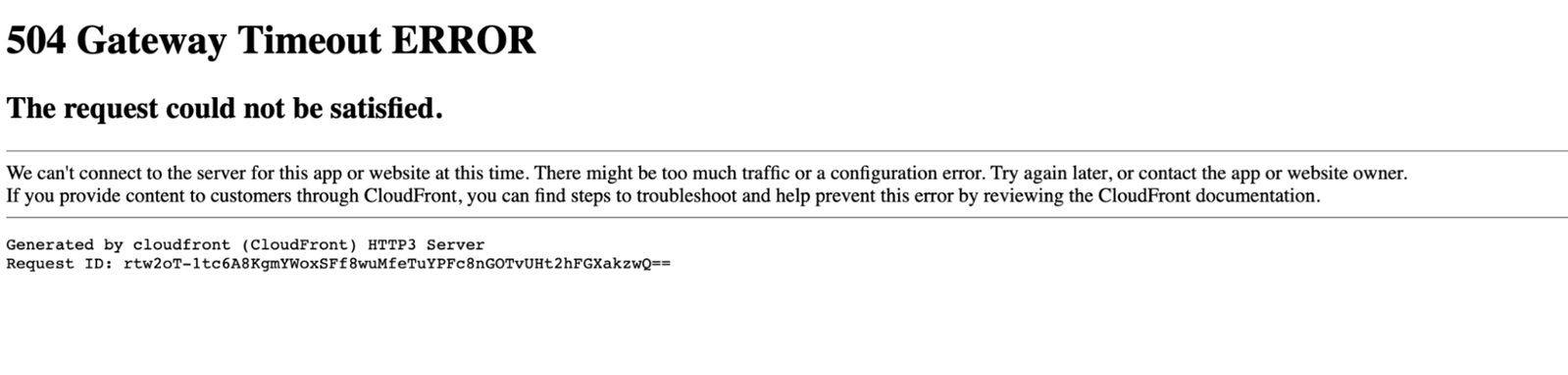 另一个明显的症状让我们误以为这是一次攻击:Cloudflare 的状态页面宕机了。该状态页面完全托管在 Cloudflare 的基础设施之外,不依赖于 Cloudflare。虽然最终证实这只是巧合,但它让参与问题诊断的团队成员开始怀疑攻击者可能同时针对我们的系统和状态页面。当时访问状态页面的用户会看到一条错误信息: