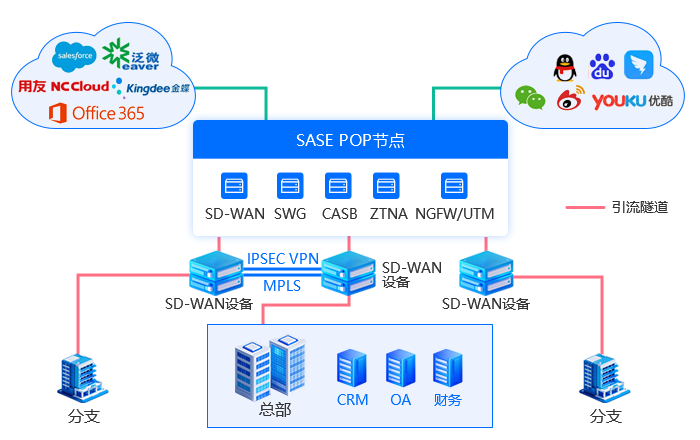 跨域骨干网传输,SASE PoP就近接入,提升访问效率快速构建高速、稳定、安全的SD-WAN网络