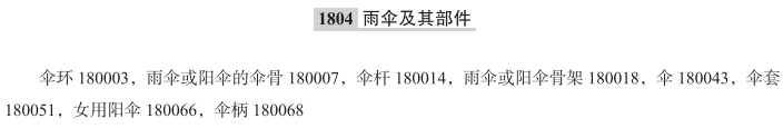伞环180003; 手持雨伞或阳伞的伞骨180007; 伞杆180014; 手持雨伞或阳伞的骨架180018; 伞180043; 伞套180051; 手持女用阳伞180066; 伞柄180068; 户外写生用伞; 高尔夫伞; 阳伞; 阳伞套; 日式油纸伞; 海滨用伞(海滨阳伞); 雨伞骨架; 女用阳伞(太阳伞); 遮阳伞; 伸缩伞; 沙滩伞; 防雨阳伞; 户外伞; 儿童雨伞; 沙滩阳伞; 雨伞袋;
