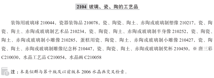 装饰用玻璃球210044; 瓷器装饰品210078; 瓷、陶瓷、陶土、赤陶、黏土或玻璃制塑像210217; 瓷、陶瓷、陶土、赤陶或玻璃制塑像210217; 瓷、陶瓷、陶土、赤陶、黏土或玻璃制艺术品210234; 瓷、陶瓷、陶土、赤陶或玻璃制艺术品210234; 瓷、陶瓷、陶土、赤陶、黏土或玻璃制半身像210252; 瓷、陶瓷、陶土、赤陶或玻璃制半身像210252; 瓷、陶瓷、陶土、赤陶、黏土或玻璃制小雕像210285; 瓷、陶瓷、陶土、赤陶或玻璃制小雕像210285; 蛋糕用瓷、陶瓷、陶土、赤陶或玻璃制小雕像210427; 瓷、陶瓷、陶土、赤陶或玻璃制雕像纪念杯210447; 瓷、陶瓷、陶土、赤陶或玻璃制奖杯210450; 唐三彩; 水晶工艺品; 水晶画; 赤陶小雕像; 瓷、陶瓷、陶土、赤陶或玻璃制半身雕像; 彩绘玻璃小雕像; 装饰沙瓶; 玻璃制艺术品; 陶瓷小雕像; 陶制半身雕像; 玻璃制半身雕像; 瓷制艺术品; 瓷制蛋; 水晶装饰品;