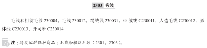 毛线和粗纺毛纱230004; 毛线230012; 绳绒线230031; 绒线; 人造毛线; 膨体线; 开司米; 羊绒线; 加捻羊毛线和纱; 以羊毛为主的混纺线和纱; 精纺毛线和毛纱;
