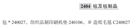 毡240027; 纺织品制印刷机垫240106; 造纸毛毯; 无纺毡; 压毡; 机织毛毡;