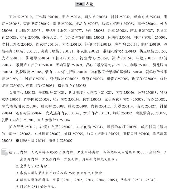 工装裤250010; 工作服250010; 护衣汗垫250017; 衣领(衣服)250020; 女用背心250022; 平脚短裤250023; 紧身围腰(女内衣)250025; 内衣250026; 睡袍250033; 毛衣250034; 套头衫250034; 衬衫250042; 衬衫前胸250043; 短袖衬衫250044; 服装250045; 裘皮服装250049; 可拆的衣领250050; 紧身衣裤250051; 连裤内衣250053; 吸汗内衣250054; 胸衣250055; 套服250056; 成品衣250057; 马裤250063; 马裤(穿着)250063; 裤子250064; 外衣250066; 成品衬里(服装的一部分)250068; 针织服装250071; 衬衫抵肩250072; 华达呢(服装)250077; 紧身胸衣(内衣)250078; 束腹紧身衣250079; 背心250082; 马甲250082; 外套250086; 防水服250087; 紧身套衫250089; 裙子250090; 仆侍人员、行会会员等穿的制服250093; 运动衫250094; 袖口250095; 袖口(衣服)250095; 围裙(衣服)250096; 皮制长外衣250103; 海滨浴场用衣250104; 服装口袋250106; 睡衣裤250108; 睡衣250108; 连衣裙250109; 内裤250112; 乳罩250114; 轻便大衣250115; 大衣250115; 宽外袍250117; 制服250119; 呢绒夹克(服装)250120; 夹克(服装)250121; 纸衣服250122; 浴衣250127; 带帽风雪大衣250143; 衬裙250144; 连身衬裙250146; 女式连身内衣250147; 仿皮服装250150; 皮衣250151; 莎丽服250154; T恤衫250155; 钓鱼背心250159; 裙裤250164; 斗篷250165; 纱笼250166; 紧腿裤(裤子)250168; 无袖罩裙250169; 女式内裤250171; 背心式紧身运动衣250172; 和服250181; 绣花服装250184; 乳胶服装250188; 装有LED灯的服装250190; 胸贴250192; 装有数字传感器的运动服250198; 朝鲜族传统服装250199; 乳贴(内衣)250201; 胸罩肩带250202; 非手术室用医护制服250204; 电热服装250206; 风衣; 羽绒服装; 旗袍; 妇女腹带; 童装; 磁疗衣; 胸罩衬垫(胸衬、胸垫); 红外线衣; 药物用衣; 摄影背心; 电热马甲; 保暖背心; 网球服; 弹力全身紧身衣; 贴身上衣; 贴身下装; 吸汗衬衫; 橄榄球分队背心; 床上穿的短上衣; 女式紧身马甲; 女式紧身连体衣; 无钢托文胸; 前扣式短袖花衬衫; 连体羽绒服; 女士内衣; 珠地布衬衫; 马球衫; 女式晨衣; 长袖套头衫; 慢跑运动裤; 伴娘礼服; 无尾晚礼服; 开领衫; 孕妇内衣; 晚礼服; 套裙; 连体服; 七分裤; 摇粒绒上装; 无袖背心; 连裤女内衣; 男式上衣; 运动裤; 狩猎夹克; 皮制套装; 滑雪衫; 吸湿排汗运动胸衣; 上衣; 热身服; 运动马甲; 丁字内裤; 防水夹克; 背心式上衣; 羽织纽(和服短褂的系纽); 妇女连衫衬裤(内衣); 运动外套; 女式衬衫; 紧身胸衣; 长袖运动衫; 短上衣; 分组背心; 衬衫式外套; 卡夫坦长衫; 防汗内衣; 长睡衣; 单板滑雪服; 罩衫; 休闲服; V字领毛衣; 朝鲜女服短上衣(赤古里); 朝鲜传统女背心; 有袖夹克; 厚呢短大衣; 长款厚大衣; 羽绒服; 无肩带乳罩; 女式无袖胸衣; 吸汗短裤; 塑料裤子; 沙滩罩衫; 毛线衫; 单板滑雪裤; 瑜伽衫; 连帽浴袍; 披风; 防风背心; 防风夹克; 连帽套衫; 布卡罩袍; 运动发汗裤; 卡多尔罩袍; 塑身内衣; 束腰女上衣; 女式开襟短上衣; 女士长裤套装; 两件套衫; 和服中衣(襦袢); 理发师用工作服; 紧身胸衣(妇女紧身胸衣); 宽松半长裤; 短套装(服装); 底裤(服装); 羊毛紧身衣; 带有领尖扣的衬衫; 连身背带短裤; 摩托车夹克; 军装式风雨衣; 袴(和服); 和服衬领(半领); 皮质裙装; 无袖运动衣; 吸烟夹克; 无带乳罩; 渔夫用夹克; 橄榄球运动短裤; 和服(普通长度的); 配西装的衬衫; 和服外褂(羽织); 女式睡裙; 腰缠布(服装); 正装衬衫; 皮夹克; 紧身背带裤; 灯芯绒衬衫; 长袖马甲; 高领衫; 宽松睡裤; 运动服套装; 针织上装; 迷你裙; 苎麻衬衫; 九分裤; 晨礼服; 运动短裤; 外套式衬衫; 带帽外套; 保护衣领用衣领垫; 保护衣领用护领; 羊绒衫; 西装外套; 针织睡衣; 针织马球衫; 百褶裙; 露腹短上衣; 连帽运动衫; 可反光的外套; 可反光的夹克; 胸罩; 牛仔裤; 羽绒夹克; 棒球服; 高尔夫短裤; 女式内衣; 牛仔布夹克; 短衬裙; 睡裙; 橄榄球运动上衣; 男式套装; 平角内裤; 吊带上衣; 连身衣; 狩猎背心; 浴袍; 无袖夹克; 拳击手短裤; 沙滩装; 长运动裤; 运动夹克; 慢跑服; 女式睡袍; 吊带衫; 羊皮夹克; 长袖衬衫; 运动制服; 汗衫; 正装长裤; 长夹克; 长袍; 沙滩外衣; 吊带裙; 连身工作服; 宽松工装裤; 连帽粗呢外套; 骑士夹克; 苏格兰式短裙; 晚礼服大衣; 定做的女式服装; 羊皮外套; 连衫裤; 棉服夹克; 汉服(中国传统服装); 针织背心; 可拆卸衣领; 裘皮外套; 牛仔布裤子; 短裤; 校服; 皮护腿套裤; 骑马裤; 皮裤; 宽松裤; 网球裙; 滑雪裤; 吸湿排汗运动衫; 吸湿排汗运动裤; 亚麻布服装; 礼服; 粗呢连帽大衣; 圆领毛衣; 女士晚礼服; 女士长睡袍; 带兜帽的风雪大衣; 哺乳胸罩; 一次性围裙; 成衣; 衣领; 冬衣; 水手服; 环颈式露背上装; 瑜伽上衣; 外裤; 蓝色牛仔裤; 女式裙裤; 紧身衣; 高领套头衫; 厚夹克; 皮外套; 女士睡衣; 沙滩裤; 男式短裤; 开襟羊毛衫; 运动上衣; 有领衬衫; 衬裤; 运动胸罩; 围裙; 厚外套; 日式睡衣; 小山羊皮夹克; 睡裤; 抓绒衣; 荷叶边式夹克衫; 训练套装; 紧身内衣(服装); 衬衫式长睡衣; 运动套装; 户外防风夹克; 针织内衣; 沙滩防晒服装; 鸡尾酒会礼服; 女式套服; 针织夹克; 女式灯笼裤; 女式套装; 针织衬衫; 高尔夫球衫; 贴身内裤; 套衫; 瑜伽裤; 粗斜纹棉布上衣; 女用内衣; 防水裤; 女式上衣; 雪地服; 抹胸; 休闲裤; 比赛用滑雪服; 女士礼服; 结婚礼服; 带肩带的女式长内衣(内衣); 保暖内衣; 运动服; 滑雪服; 运动衬衫; 短袖运动衬衫; 内裤(服装); 高尔夫球裤; 运动背心; 灯芯绒裤子; 宽松上衣; 