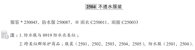 服装250045; 防水服250087; 雨衣; 雨披; 防雨裤; 防水裤; 防水夹克; 防雨夹克;