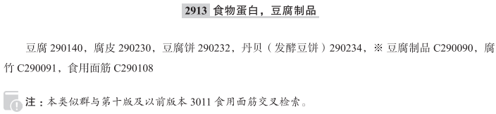 豆腐290140; 腐皮290230; 豆腐饼290232; 丹贝(发酵豆饼)290234; 以豆腐为主的零食小吃290271; 豆腐制品; 腐竹; 食用面筋; 臭豆腐干; 冻干豆腐块; 豆腐脑; 食用预制面筋; 千层豆腐; 臭豆腐; 油炸豆腐块;