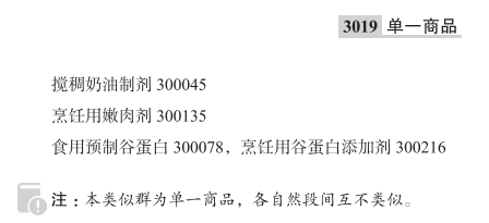 搅稠奶油制剂300045; 食用预制谷蛋白300078; 烹饪用嫩肉剂300135; 烹饪用谷蛋白添加剂300216;