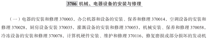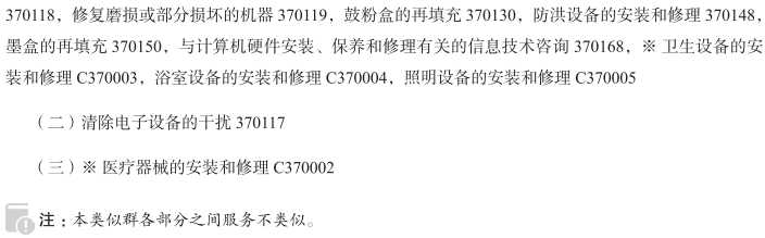电器的安装和修理370003; 办公机器和设备的安装、保养和修理370014; 空调设备的安装和修理370028; 厨房设备安装370035; 灌溉设备的安装和修理370053; 机械安装、保养和修理370058; 冷冻设备的安装和修理370078; 计算机硬件安装、维护和修理370116; 清除电子设备的干扰370117; 修复磨损或部分损坏的发动机370118; 修复磨损或部分损坏的机器370119; 鼓粉盒的再填充370130; 防洪设备的安装和修理370148; 墨盒的再填充370150; 与计算机硬件安装、保养和修理有关的信息技术咨询370168; 医疗器械的安装和修理; 卫生设备的安装和修理; 浴室设备的安装和修理; 照明设备的安装和修理; 土方机械清洁; 照明设备清洁; 医疗器械和仪器的清洁; 印刷机器清洁; 铸造设备安装; 橡胶制造机器清洁; 半导体制造机器清洁; 伐木机器清洁; 农业机器清洁; 空调出风口的密封服务; 计算机系统用硬件的安装; 抽油烟机清洁服务; 能源生产装置的维护和修理; 外科仪器和设备的修理和维护; 轮椅的修理; 铸造产品安装; 空中导航设备的修理; 计算机硬件的升级; 通过远程监控系统对客运电梯进行保养; 计算机硬件的安装和修理; 抽水马桶的安装和修理; 淋浴器的安装和修理; 碟形卫星天线的安装和修理; 通信网络设备的安装; 医疗机器和设备的修理; 电信机器和设备的修理; 计算机系统的安装; 工业用水净化设备的修理或维护; 风力发电设备的修理和维护; 办公机器和设备的修理或维护; 化学加工机器和设备的修理或维护; 空调气孔密封服务; 消费电子产品的修理; 消费性电器维护; 牛奶过滤器修理; 非电烹饪加热器的修理; 伐木机器和设备的修理或维护; 制纸浆机器和设备的修理或维护; 测量设备和仪器的修理或维护; 木材加工机器和设备的修理或维护; 造纸机器和设备的修理或维护; 试验设备和仪器的修理或维护; 贴面板机器和设备的修理或维护; 纸加工机器和设备的修理或维护; 胶合板制造机器和设备的修理或维护; 理发店用机器和设备的修理或维护; 美容院用机器和设备的修理或维护; 计算机硬件的维护与修复; 数据处理设备的安装、维护和修理服务; 冰箱修理; 电动制饮料机的安装和修理; 平板电脑修理; 3D打印机的维护; LED屏的安装和修理; 厨房抽油烟机的安装和修理; 厨房抽油烟机清洗服务; 淋浴热水器的安装和修理; 洗衣机清洁; 自助取款机的安装和修理; 空调清洗服务; 电动地板清洁机的修理或维护; 数据处理设备的维护; 助听器的修理和维护; 起重机的修理; 通信用机器和设备的修理或维护; 非电烹饪加热器的维护; 数据网络设备安装; 发电设备和装置的维护、检修和修理; 扫雪机的修理或维护; 金属加工机械和设备的修理; 办公机器和设备的修理; 光伏装置的安装和维护; 太阳热能装置的安装和维护; 为电子设备清除干扰; 测量测试设备的维修信息; 电力和发电设备的安装; 安装连接电话中心的电子和数字装置; 医疗设备和仪器维护; 产油设备的安装; 给水泵或增压泵的修理和维护; 修理受损电脑; 无线电设备或电视设备的修理; 农业机器和工具的修理或维护; 工业用空气调节设备的修理或维护; 娱乐用机器和设备的修理或维护; 孵鸡器修理或维护; 电影机器和设备的修理或维护; 计算机及其周边设备的安装、修理和维护; 计算机修理或维护; 工业用烹饪设备修理或维护; 烹饪用具的修理或维护; 耕作机器和器具的修理或维护; 潜水机器和设备的修理或维护; 孵卵器修理或维护; 电动机修理或维护; 捕鱼机器和装置的修理或维护; 饲料切碎机修理或维护; 饲料粉碎机修理或维护; 饲料混合机修理或维护; 轧饲料机修理或维护; 玻璃器皿制造机器和设备的修理或维护; 收割机械和器具的修理或维护; 工业洗碗机的修理或维护; 工业炉的修理或维护; 工业洗衣机的修理或维护; 集成电路制造机器和装置的修理或维护; 装卸机器和设备的修理或维护; 挤奶机修理或维护; 采矿用机器和设备的修理或维护; 光学机器和仪器的修理或维护; 高射投影仪的修理或维护; 包装机器和设备的修理或维护; 涂漆机器和设备的修理或维护; 植物纤维加工机械和器具的修理或维护; 配电或控电机器和设备的修理或维护; 生产橡胶制品用机器和设备的修理或维护; 半导体制造机器和系统的修理或维护; 养蚕机器和器具的修理或维护; 缝纫机修理或维护; 制鞋用机器和设备的修理或维护; 纺织机器和设备的修理或维护; 烟草加工机修理或维护; 自动售货机修理或维护; 视频机器和设备的修理或维护; 废物压实机器和设备的修理或维护; 废物粉碎机器和设备的修理或维护; 照明设备安装咨询服务; 视听设备安装咨询服务; 修理医疗器械; 安装照明设备; 修理照明设备; 真空吸尘器修理; 供水设备维修; 空气过滤装置的维修; 机器安装; 电子监控器的安装; 无线通信设备的修理; 安装除尘装置; 印刷机墨辊的安装、维护和修理; 干燥设备的安装; 沼气洗涤设备的维护; 沼气洗涤设备的修理; 调色墨盒的再填充; 数据处理设备的安装; 金属加工用冲床的修理和维护; 鼓风机的安装、维护和修理; 印刷机的安装、维护和修理; 轧钢机的安装、维护和修理; 路灯的安装、维护和修理; 温度控制装置的安装、维护和修理; 风速计的安装、维护和修理; 贴标机的安装、维护和修理; 油分离器的安装、维护和修理; 垃圾处理机的修理; 