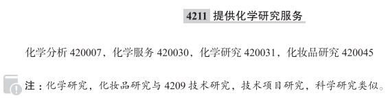 化学分析420007; 化学服务420030; 化学研究420031; 化妆品研究420045; 在动物身上研究化合物合用的作用机理; 流动化学领域的研究; 生物化学领域的研发; 化妆品研究(为他人); 矿物和油质化验; 关于农业化学的专业咨询服务和建议; 农用化学品研究服务; 化学分析评估服务; 化学合成评估服务; 化学领域的实验室研究; 生物化学研究; 化学生产方法的开发和测试; 进行化学分析; 化妆品领域的实验室研究; 生物化学研究和分析; 化学研究服务; 化学研究和分析; 护发制剂领域的科学研究; 化妆品领域的科学研究咨询; 化妆品领域的研发服务; 化学分析服务; 化学咨询; 化学领域的研发服务;