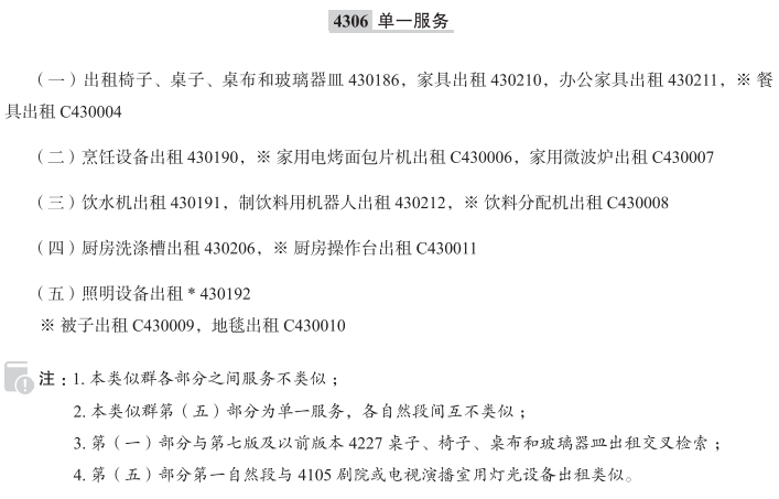 出租椅子、桌子、桌布和玻璃器皿430186; 烹饪设备出租430190; 饮水机出租430191; 照明设备出租430192; 厨房洗涤槽出租430206; 家具出租430210; 办公家具出租430211; 制饮料用机器人出租430212; 火锅出租430216; 餐具出租; 家用电烤面包片机出租; 家用微波炉出租; 饮料分配机出租; 被子出租; 地毯出租; 厨房操作台出租; 床单和枕套出租; 扶手椅出租; 杂志架出租; 酒店窗帘租赁; 酒店壁挂出租; 酒店家具租赁; 酒店地板覆盖物出租; 制备即食食品用厨房工作台的出租; 台式烹饪炉出租; 装饰私人住宅用照明设备出租; 餐桌出租; 家用燃气炉出租; 家用烤面包机出租; 烹饪用高压锅出租; 台式电烹饪炉出租; 桌布出租; 电动巧克力喷泉机出租; 餐盘出租; 小地毯出租; 办公室家具出租; 家用便携式电烹饪炉出租; 日式被褥出租; 婴儿玩耍用携带式围栏出租; 工业用烹饪设备出租; 非电烹饪加热器出租; 毛毯出租; 枕头出租; 便携式书桌出租; 服装架出租; 衣帽架出租; 家用电蒸锅出租; 圣诞树用电灯出租; 床出租; 饮料喷泉机出租; 床垫出租; 家用烤面包片机出租; 非医用充气床垫出租; 保温餐炉出租; 地垫租赁; 家用厨房洗涤槽的出租; 商用厨房洗涤槽的出租; 咖啡机出租; 桌椅出租; 出租有小脚轮的茶具台; 餐桌用冰桶出租; 冷热饮料机出租; 沙发出租; 出租家具; 烹饪炉出租;