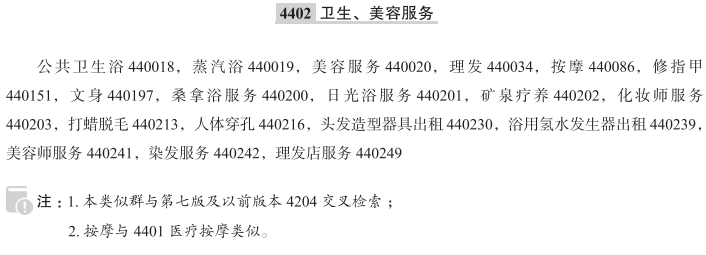 公共卫生浴440018; 蒸汽浴440019; 美容服务440020; 理发440034; 按摩440086; 修指甲440151; 文身440197; 桑拿浴服务440200; 日光浴服务440201; 矿泉疗养440202; 化妆师服务440203; 打蜡脱毛440213; 人体穿孔440216; 头发造型器具出租440230; 浴用氢水发生器出租440239; 美容师服务440241; 染发服务440242; 理发店服务440249; 面部护理服务440283; 化妆领域咨询服务; 人工日光浴晒黑服务; 人体穿孔服务; 美容咨询; 织发服务; 人工晒黑服务; 人体蜜蜡脱毛服务; 纹眉去除服务; 假发的理发服务; 修指甲服务; 室内温泉浴服务; 室外温泉浴服务; 耳垢清理服务; 激光去除纹身服务; 足部按摩服务; 头发护理咨询; 上门美甲服务; 儿童理发店服务; 足部护理服务; 提供美容信息; 染睫毛服务; 睫毛接长服务; 编发; 永久化妆服务; 皮肤护理设备出租; 头发造型; 与美容相关的咨询服务; 文身服务; 头发挑染服务; 理发服务; 脚底按摩服务; 以化妆为目的的皮肤晒黑服务; 提供蒸汽浴设施; 文色服务; 文身店; 永久脱毛服务; 足部美容护理; 美容咨询服务; 儿童美发沙龙服务; 女士美发沙龙服务; 染眉服务; 由矿泉疗养中心提供的身体美容护理服务; 提供与传统日式按摩相关的信息; 美黑服务; 为活动提供便携式盥洗室; 在线化妆咨询服务; 烫发服务; 化妆服务; 剪发; 皮肤护理; 促进身心健康的矿泉疗养; 棉线修眉服务; 理发师服务; 穿耳孔服务; 文眉服务; 提供公共浴池设施; 提供浴室; 美容院服务; 运动按摩; 激光去除纹身; 泰式按摩服务; 在线或面对面提供的化妆咨询服务; 有关护发的咨询服务; 烫睫毛服务; 修眉服务; 激光脱毛服务; 头发护理服务; 红外桑拿服务; 修脚服务; 采耳服务; 美容院; 喷雾美黑服务; 电针脱毛美容; 提供发型设计领域的信息; 提供桑拿设施; 脱毛服务; 美发服务; 指甲护理服务; 理发店; 头发染色服务; 美容咨询顾问服务; 按摩信息; 身体美容护理服务; 美容护理服务; 接发服务; 蜡脱体毛服务; 为卫生目的提供公共浴池; 提供有关公共浴池设施的信息; 有关美容脱毛的咨询服务; 有关按摩的咨询服务; 热石按摩;