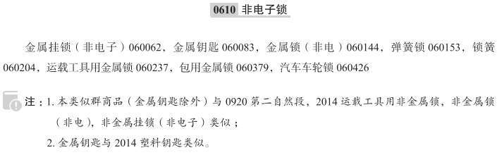 金属挂锁(非电子)060062; 金属钥匙060083; 金属锁(非电)060144; 弹簧锁060153; 锁簧060204; 运载工具用金属锁060237; 包用金属锁060379; 汽车车轮锁060426; 金属舌锁; 金属制滑雪板锁; 金属弹簧锁(非电); 锁匠用金属撞匙; 自行车用金属锁; 锁的金属钥匙; 金属钥匙坯; 金属锁簧;