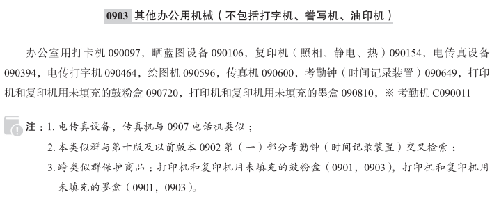 办公室用打卡机090097; 晒蓝图设备090106; 复印机(照相、静电、热)090154; 电传真设备090394; 电传打字机090464; 绘图机090596; 传真机090600; 考勤钟(时间记录装置)090649; 打印机和复印机用未填充的鼓粉盒090720; 打印机和复印机用未填充的墨盒090810; 考勤机; XY绘图机; 便携式传真机; 传真发送机; 传真机用未填充鼓粉盒; 传真机用未填充墨盒; 传真设备; 传真收发装置; 传真装置; 带指纹识别的计算机化考勤钟; 电子绘图机; 复印传真一体机; 复印机; 复印机器; 复印机用未填充的墨盒; 复印设备; 绘图仪用打印头; 静电复印机; 静电复印设备和装置; 热敏复印机; 数字彩色复印机; 数字绘图机; 制蓝图机;