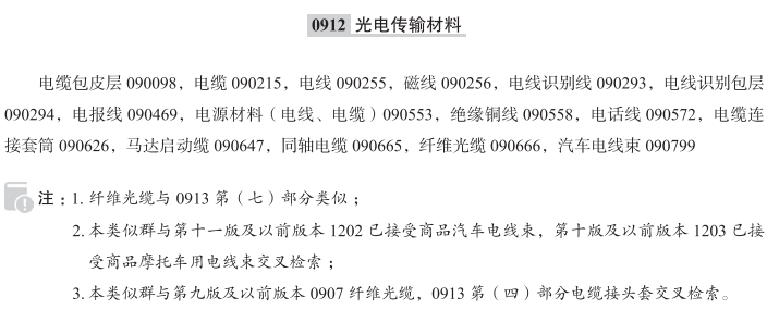 电缆包皮层090098; 电缆090215; 电线090255; 磁线090256; 电线识别线090293; 电线识别包层090294; 电报线090469; 电源材料(电线、电缆)090553; 绝缘铜线090558; 电话线090572; 电缆连接套筒090626; 马达启动缆090647; 同轴电缆090665; 纤维光缆090666; 汽车电线束090799; USB线; 充电电缆; 传输声音和图像用电缆; 传送和接收有线电视信号用电缆; 带塑料包层的电线; 带橡胶包层的电线; 带有滤波器的同轴电缆; 电导线; 电话线延长线; 电缆导线; 电缆接头; 电缆延长线; 电缆用金属螺纹接头; 电气裸线; 电线和电缆; 电线延长线; 电信电缆; 电信号传输系统用电缆; 电源电缆; 电源线; 电转接线; 调制解调器用线缆; 耳机转接线; 高清多媒体接口电缆; 光导纤维连接套筒; 光缆; 光学信号传输用缆; 吉他电源线; 计算机电缆; 计算机用电缆; 胶皮包层的电线; 接地电缆; 跨接电缆; 跨接起动电缆; 矿物绝缘电缆; 连接电缆; 连接用电缆; 麦克风用电缆; 摩托车电线束; 汽车用电线束; 强电流架空电缆; 柔性扁平电缆; 声音和图像传输用电缆; 视频线; 手机用USB线; 输电线路接头; 数据同步电缆; 数据线; 水下用电缆; 塑料包层的电线; 通信电缆; 无线电中继电缆; 延长电线; 扬声器电线; 移动电话数据线; 移动电话用数据线; 音频连接线; 音频线;